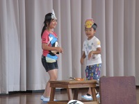 本日,児童集会で1年生の発表がありました。発表内容は,国語科で学習した「おむすびころりん」の劇でした。大きな声や身体をたくさん動かして,「おむすびころりん」の内容を全校児童に伝えてくれました。劇中の1年生の表情は,とてもニコニコしていて,楽しそうでした。