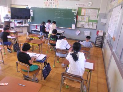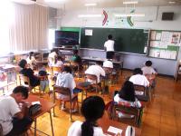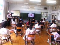 写真は、2年生と6年生の学級活動の様子です。子供たちは、集中して先生の話を聞いていました。(各教室は、熱中症予防として冷房により快適な状態を保っています。)