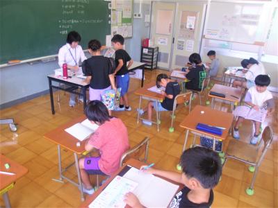 本校では、7月24日(月)~28日(金)まで、夏休みの補充学習と水泳教室を集中して行っています。補充学習では、複数体制で夏休みワーク、自学、個別補充学習など、個々の状況に応じて、しっかりと学習しています。苦手だった学習もどんどんチャレンジして、夏休み中に克服してほしいものです。
