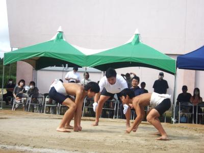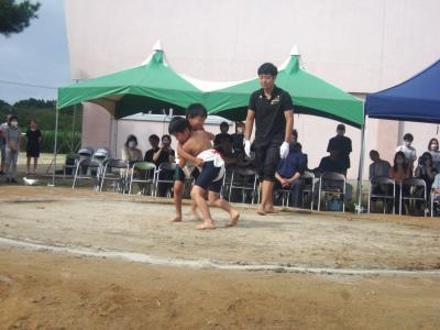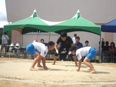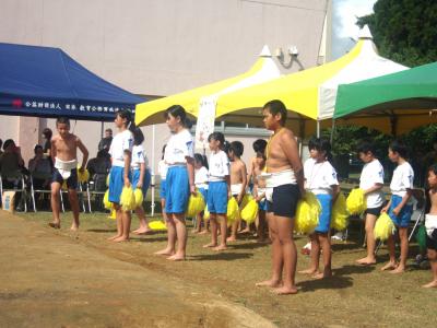 9月15日(金)、本校の記念すべき第50回の相撲大会が開かれました。4年ぶりの開催です。男子はまわしをつけ、女子はさらしをまき、土俵に上がり熱い勝負を繰り広げていました。第1部は、学年を東西に分けての東西対抗、第2部は各グループの応援合戦、第3部は、グループ対抗のトーナメント戦です。児童は、真剣勝負で応援の皆様を楽しませてくれました。