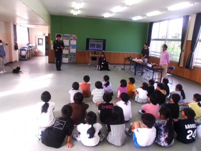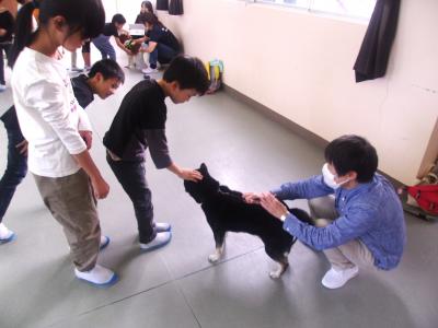 10月19日(木)5限目に、石川県福祉部主催の「子どもと犬のふれあい教室」が本校の1・2年生対象に開かれました。3頭の犬と飼い主さん、救助犬協会の方、北部保健所職員の方が来校され、動物・ペット・犬についてのお話のあとに、ふれあいの時間がありました。犬を怖がっていた児童も、優しい犬たちと接し、すっかり仲良しになれました。犬のセラピー効果はすごいです。犬に癒された1時間でした。ご協力いただきました関係者の皆様、本当にありがとうございました。