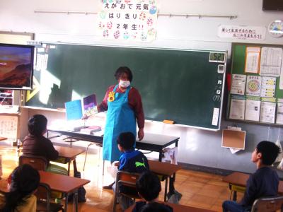 12月1日(金)に1・2年生の食育の授業が行われました。本校は、松波中学校が給食をつくり本校に配送するという共同調理場方式で給食を実施しており、本校には栄養教諭や栄養士は勤務しておりません。担任が必要に応じて食育の授業をこれまでも行ってきましたが、専門的知識をもつ栄養教諭の授業も必要と考え、松波中学校栄養教諭の高橋先生に今回の食育授業をお願いしました。2年生では、食事のいろいろなマナーについて指導をしていただきました。2年生は、食事のマナーについてしっかりと考える良い機会になったようです。高橋先生、どうもありがとうございました。(尚、3~6年生の授業も、12月~1月に行います。)