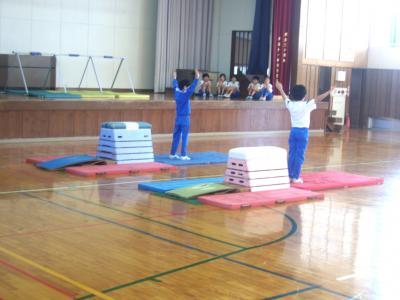 今日から11月になりました。今日は、朝の全校集会で4年生による器械運動交歓会のための校内発表が行われました。4年生は、10月より集中して器械運動の練習に取り組んできました。できなかった技ができるようになった児童がたくさんおり、今日はその成果を全校児童に見てもらいました。堂々と元気よく行った器械運動はとても素晴らしいものでした。11月8日に行われる器械運動交歓会では、最高の演技をしてきてほしいと思います。頑張れ4年生!