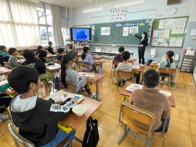 11月21日(火)の午前中に、本校の海洋教育の一環で5・6年生がいかさばき体験(イカの一夜干しづくり)を行いました。ご協力いただいたのは、小木の株式会社和平商店様、能登里海教育研究所の皆様です。最初に、能登の漁場や漁法、イカ漁のお話をしていただきました。そのあと6年生からイカさばき体験を行いました。和平商店従業員の方による、さばき方の実演・指導をいただき、イカさばき本番です。プロとは違って、はじめは恐る恐る行っていましたが、そのうち手際もよくなってきました。いつも食べているイカがこのように1つ1つ手作業でさばかれて商品になっていることや、、イカの体の仕組みなど多くのことを学ぶことができました。ご協力いただきました株式会社和平商店様、能登里海教育研究所の皆様、本当にありがとうございました。