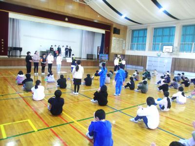 10月30日(月)朝タイムに児童集会が開かれ、2年生が発表しました。朝の歌でも歌っている「虹」の合唱でした。手話をつけてサビの部分を歌いました。難しい手話でしたが、頑張って披露してくれました。途中、手話を全校児童に教える部分もあり、最後は全校児童みんなで手話をしながら歌いました。とても緊張していましたが、よく頑張りました2年生。素敵な発表になりましたね。