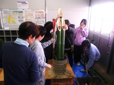 12月10日(火)の5・6限目に、4年生の親子行事が行われました。内容は、門松づくりです!親子で力を合わせ立派な門松をつくっていただきました。完成した門松は、松波小学校仮設校舎に玄関前に設置しました。門松を見ると気分は既にお正月です。