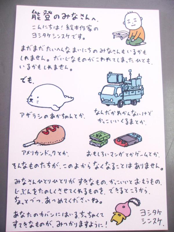 ヨシタケシンスケ展かもしれない石川会場実行委員会の皆様より、絵本を贈呈していただきました。また作者のヨシタケ様よりメッセージカードもいただきました。