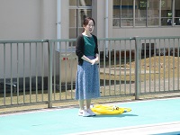 山村先生からは,「十分な睡眠や食事を摂ったうえで,プールに入るようにしてください。」とお話がありました。また,絆創膏類を貼るような怪我(けが)をしている場合には,プールに入ることができないことも確認しました。