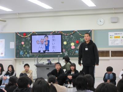 球技のスポーツ選手、DMAT、保育士、美容師、お笑い芸人などさまざまな夢をみんなの前で、宣言してくれました。声に出し続けることが大事です。未来にいきる自分たちにエールを送っているようにもみえました。