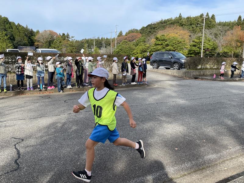 すでに走り終わっていた1・2年生は,沿道で応援しました