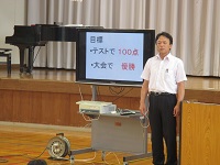 「目標」を持つことの大切さに関するお話でした。校長先生からは,「目標を持つからには,テストで100点を目指し,大会では優勝を目指しましょう。」とお話がありました。また,そのためには「努力」が必要であり,たとえ努力をした上で失敗したとしても,今後の成長につながる。」とおっしゃっていました。