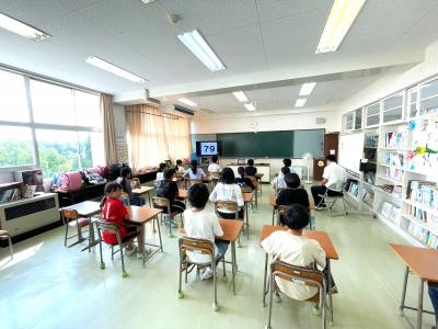 8月5日(月)です。全校登校日でした。元気に登校してくる子どもたちの元気な姿が見られました。今日は、朝掃除のあと全校集会でした。ただ気温が高く熱中症の恐れがあるということで、リモートでの全校集会に変更しました。内容については、広島原爆投下8月6日の前日ということで、平和についての話をしました。リモートではありましたが、児童は真剣に話を聞いていました。内容は、原爆投下について(広島・長崎)についてや戦争の悲惨さについて話を行いました。現在ウクライナや中東でも大切な命が奪われています。戦争がない平和な世界をつくりあげてほしいという気持ちで未来を担う子どもたちに話しました。全校集会のあとは、各学級でその学年に応じた平和の授業をおこない、平和について更に学びました。