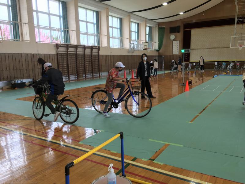 1・2年生は,各教室で交通安全についてのDVDを視聴し,3年生以上は体育館で自転車の乗り方の講習を受けました。
