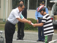 7月3日(水),今週末の県自転車大会にむけて,本校で激励会を行いました。交通安全協会会長や校長先生からは,「これまでの練習の成果を十分に発揮してほしい。」,「(昨年の6位にも触れ)昨年以上の成績を目指して頑張ってほしい。」と激励の言葉がかけられました。