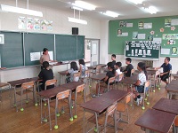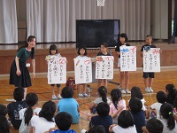 また,終業式のあと,川端先生の離任式が行われました。川端先生からは,「1学期間を通して,みなさんの頑張る姿が見られて,とても良かったです。この調子で,2学期以降も授業や学校行事などに頑張ってほしいです。」とお話がありました。それに対して児童からも,「お世話になりました。いつでも松波小学校へ遊びに来てください。」と目を潤ませてメッセージを伝えていました。