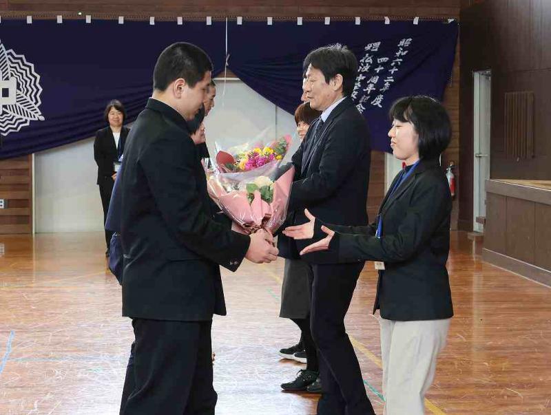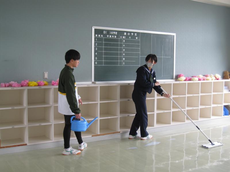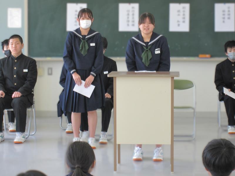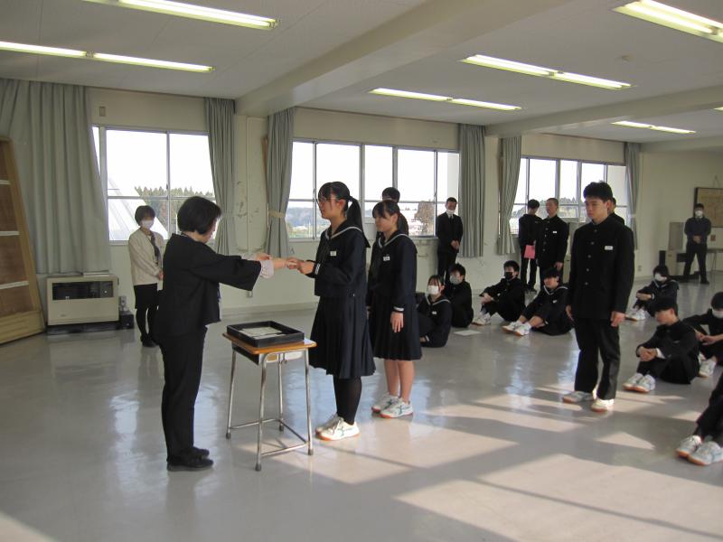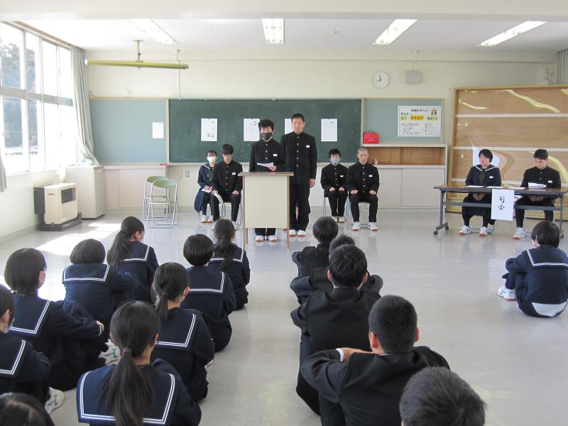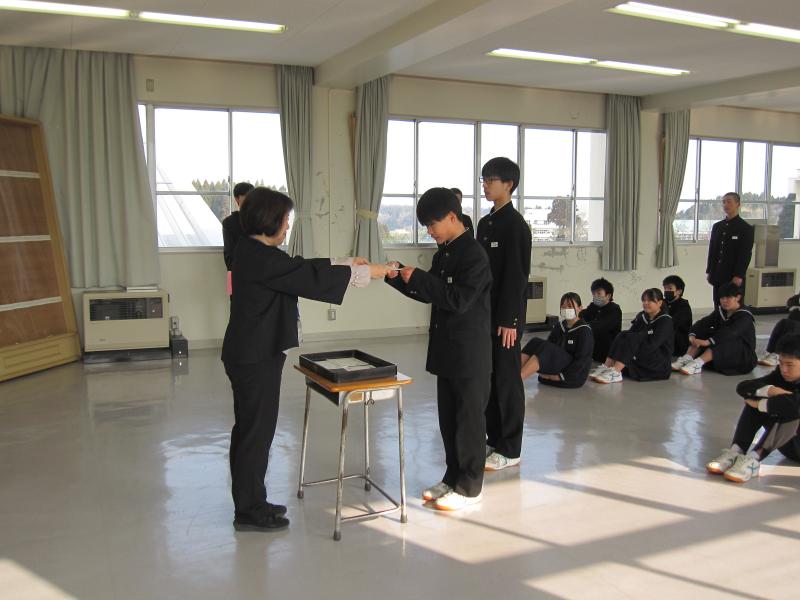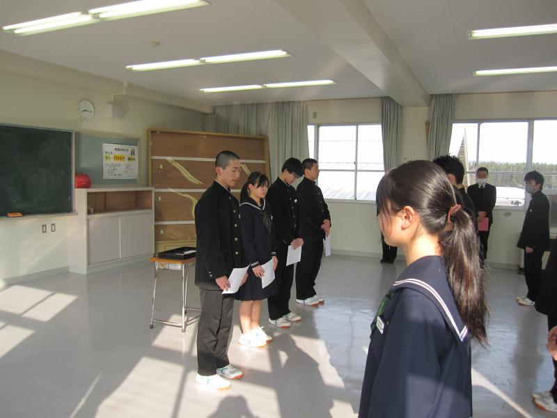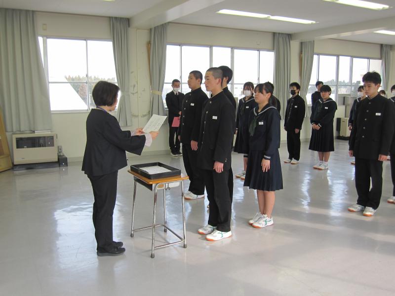 2学期最終日。今日は、全校で大掃除や表彰式、終業式を行いました。また、学級では身の回りの整理整頓をした後、冬休みの過ごし方について、生活面や学習面の目標を考え実践するための計画を立て、2週間の冬休みが有意義な時間として過ごせるよう確認しました。下校時、生徒から「良いお年を!」と声を掛けられたのですが、明日からの冬休みへの期待感にあふれ元気いっぱいの声でした。元気に楽しく、そしてしっかりとこれまでの学習を定着するための冬休みとして過ごしてほしいと思います。皆様、良いお年をお迎えください