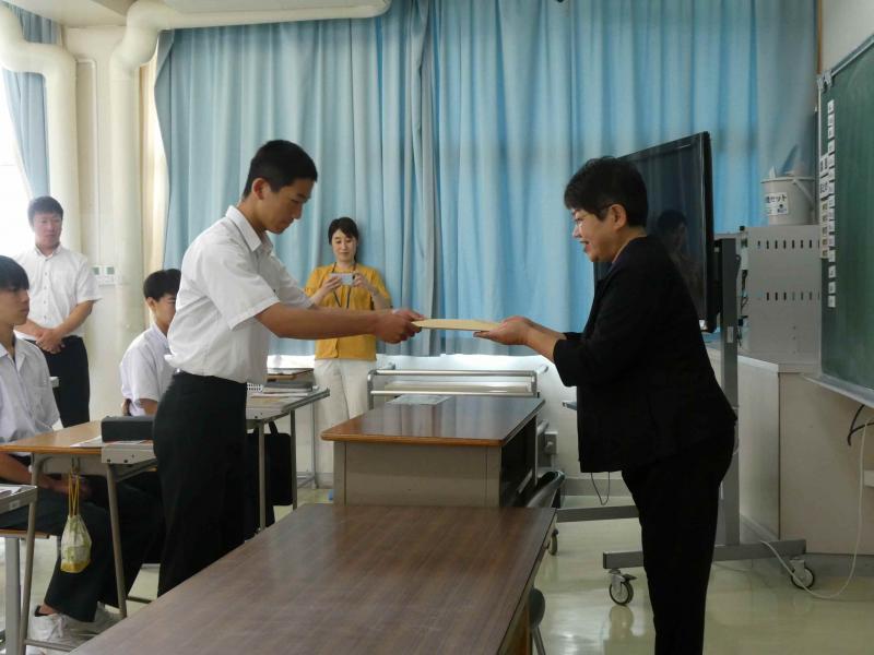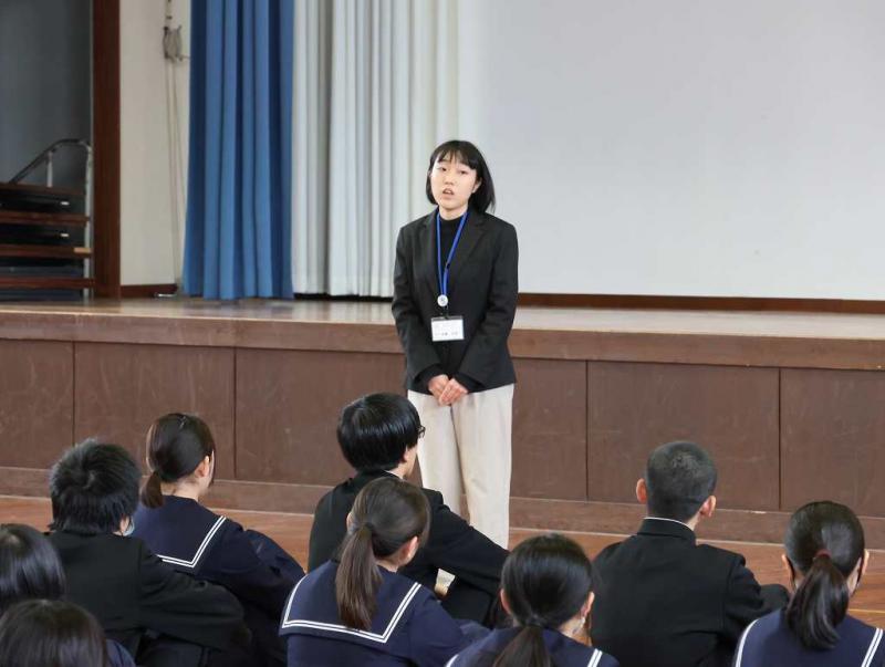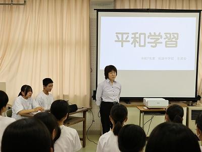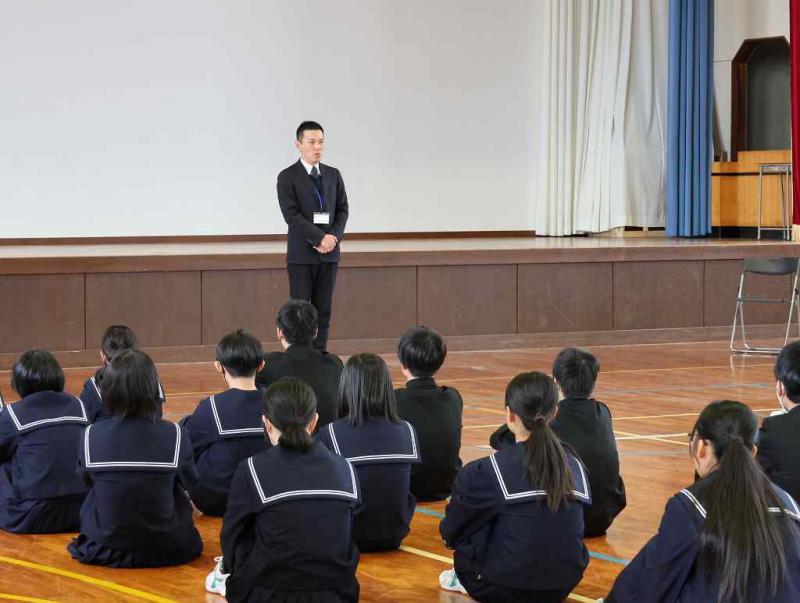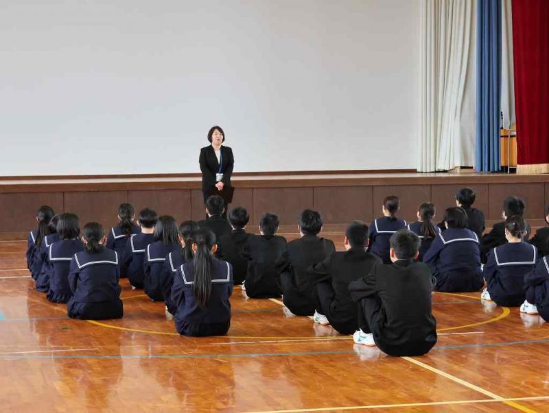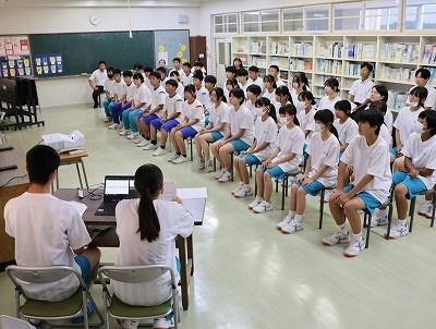 海洋教育の一環で、毎年大学教授をお招きし、海に関するお話を聞いています。今年は、2年生が柳田中学校と合同で、東京大学の原田尚美教授から、「南極と北極」「第66次南極観測隊の経験から」と題して、科学的なデータや観測隊として南極に行かれた経験を交えて、たくさんの貴重なお話を聞くことができました。最後に先生から「今、自分がいる場所が全てではなく、地球規模で考え行動してみよう」と、メッセージをいただきました。また、生徒からのたくさんの質問にも丁寧に答えていただき、ありがとうございました。