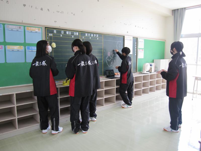 松波中学校では、毎年地域のお年寄りの皆さんに年賀状を送っています。今年も校区内にある第二長寿園の皆さんの健康を祈って、年賀状を書きました。手書きのものが少なくなっているからこそ、気持ちを込めて1枚1枚丁寧に仕上げていました。校内コンクールも兼ねて行い、図書文化委員が審査して入選したものは玄関に掲示しています。(実物はお渡ししたので、スキャンしたものです)投函することのできるのですが、図書文化委員で直接お伺いし、渡してきました。~良いお年をお迎えください~
