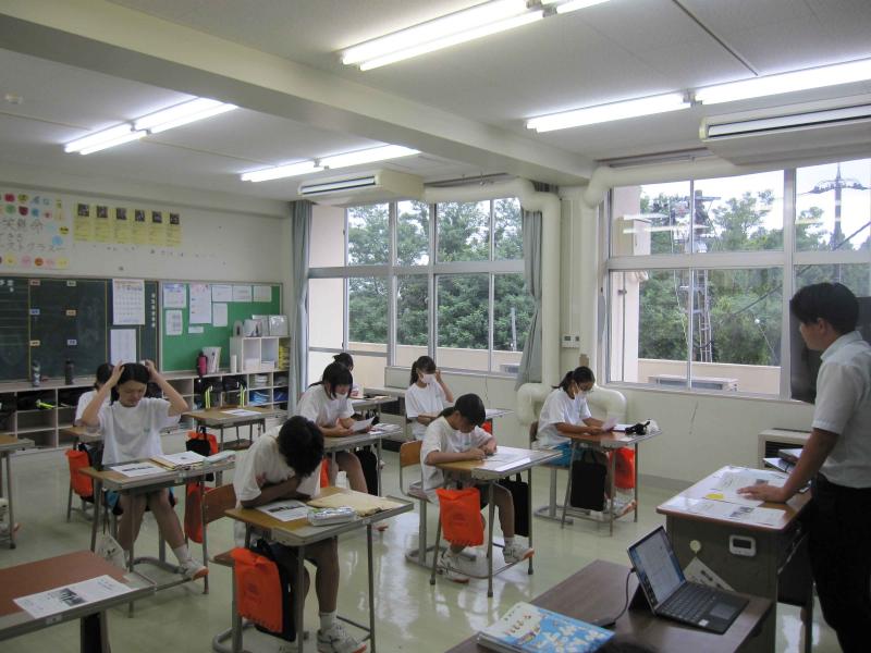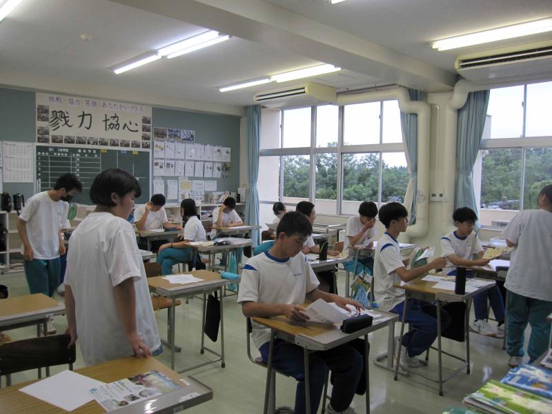今日から2学期期末テストを行います。26日から1週間、テスト前勉強期間とし、各自取り組んできました。普段の授業での学習の積み重ねはもちろん、その復習をしっかりと行うことがめあての1週間でした。メディア時間を調整して、学習に取り組むことも大切です。生活時間を自分で調整する力を身につけ、成果につながる3日間にしてほしいと思います。