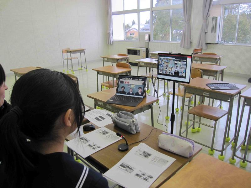 長野県信濃町は能登町と姉妹町であり、信濃町立信濃小中学校の佐藤校長先生から「長野上水内中学校生徒会サミット」への参加のお誘いをいただき、本校から執行委員の2年生2名が参加しました。能登町や松波中学校の紹介をした後、グループに分かれて「来年度の生徒会について」「地域とのつながり」をテーマにディスカッションをしました。地域は違いますが、同じ中学生として、28校の生徒会の皆さんと画面を通して顔を見ながら、どんな考えを持って活動しているかを話すことができ、充実した時間になりました。