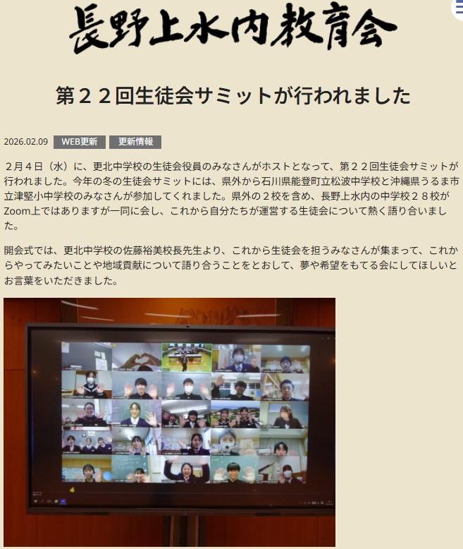 長野上水内中学校生徒会サミットのブログを紹介します‼