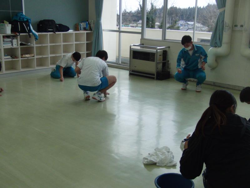 本日は卒業式(3/9土曜日)の振替休業日です。いつもなら静かな月曜のはずですが、卒業式の練習でしょうか。小学生の歌声が響きます。避難所関係の方々の出入りもあります。