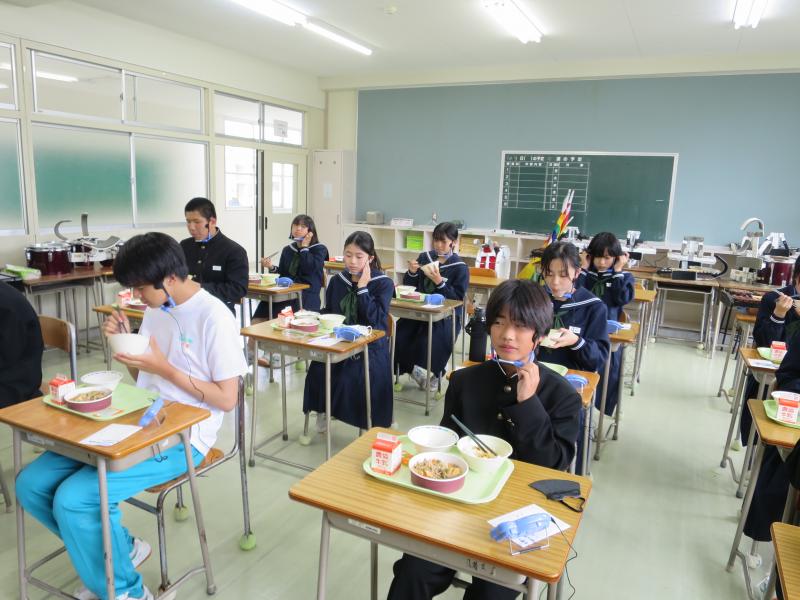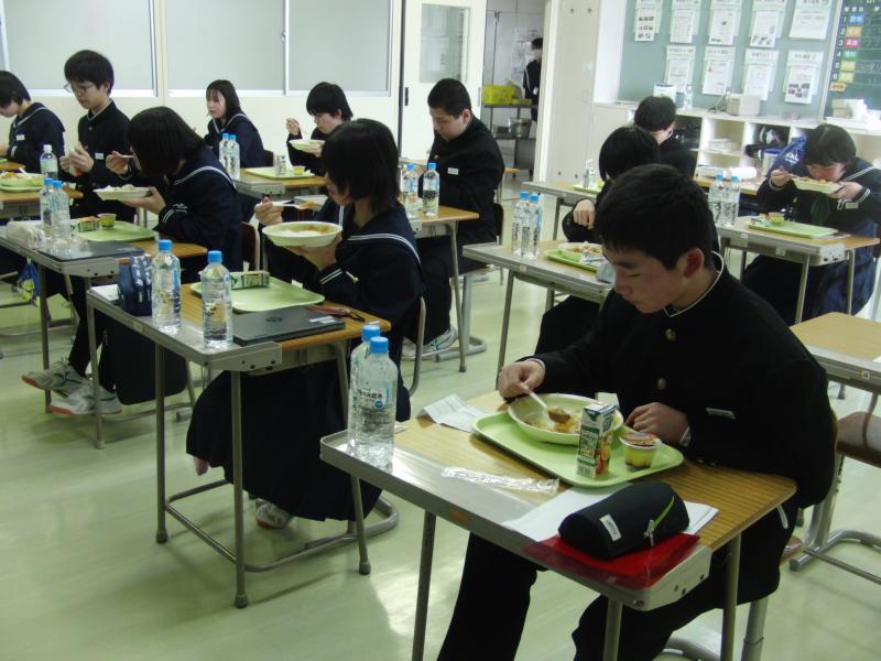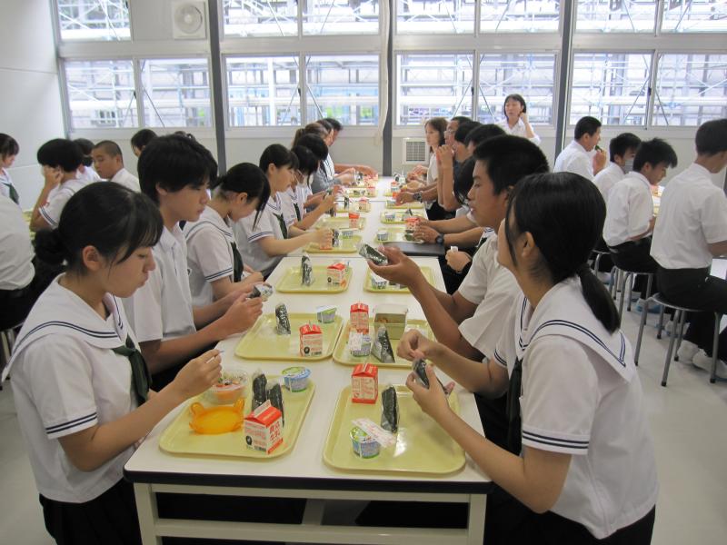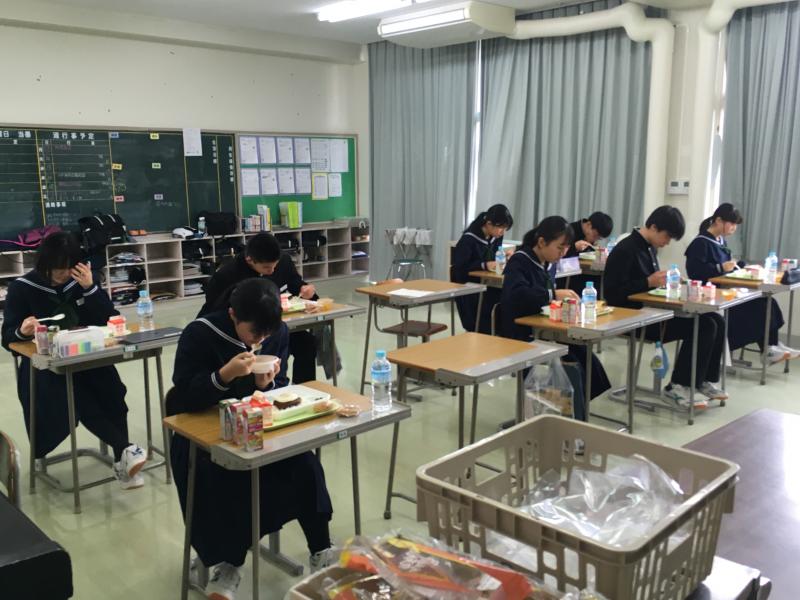 今日から小学校の仮設校舎に給食調理場が移動し、中学生は仮設校舎のランチルームでの給食になりました。全員スムーズに移動し、給食当番もてきぱきと配膳してくれたので、時間内に食べることができました。初めての「ランチルーム給食」に少々戸惑っている様子も見られましたが、にぎやかに楽しく食べる時間になってくれればいいな、と思います。