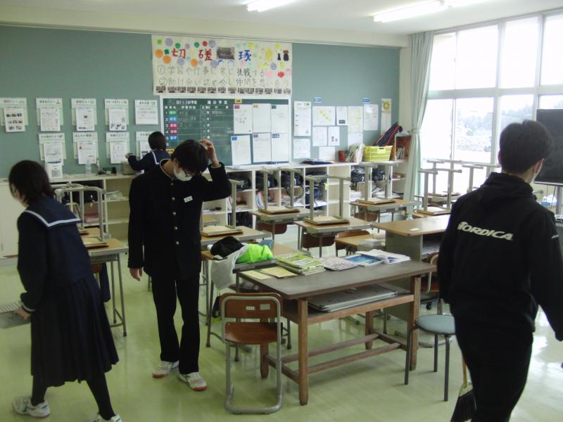 被災の為、遠方に避難したり転校したりした生徒たちが松波中に帰ってきました。明日の卒業式に合わせて顔を見せに来てくれた生徒もいます。ある生徒に「おかえり」と言ったら「ただいま」と答えたそうです。教室では話に花が咲いているようです!(放課後に来てくれた生徒もいました。…写真撮れず、残念)