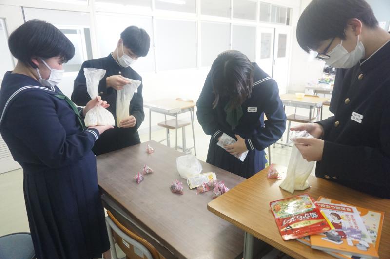 3年生は総合的な学習の時間に海洋教育として、海産物を中心にしたふりかけ作りに挑戦しています。昨日、小木の和平商店さんにご協力いただき、販売品を製作しました。昨日までの様子をホームページ「のとかけ(海藻ふりかけ)」コーナーで紹介しますので、ぜひご覧ください。