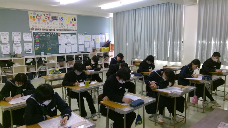 在校生(1・2年生)は、今日・明日と期末テストを受けています。2学期には、じっくりと取り組む時間が長くなっているとお伝えしましたが、その様子は現在も継続されています。静かに時間一杯、問題に取り組んでいました。また、オンラインで一緒にテストに臨んでいる生徒もいました。