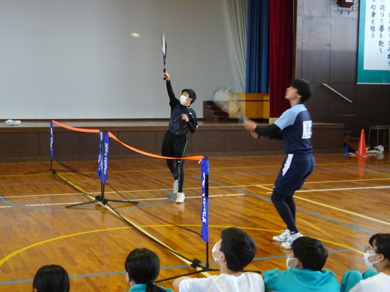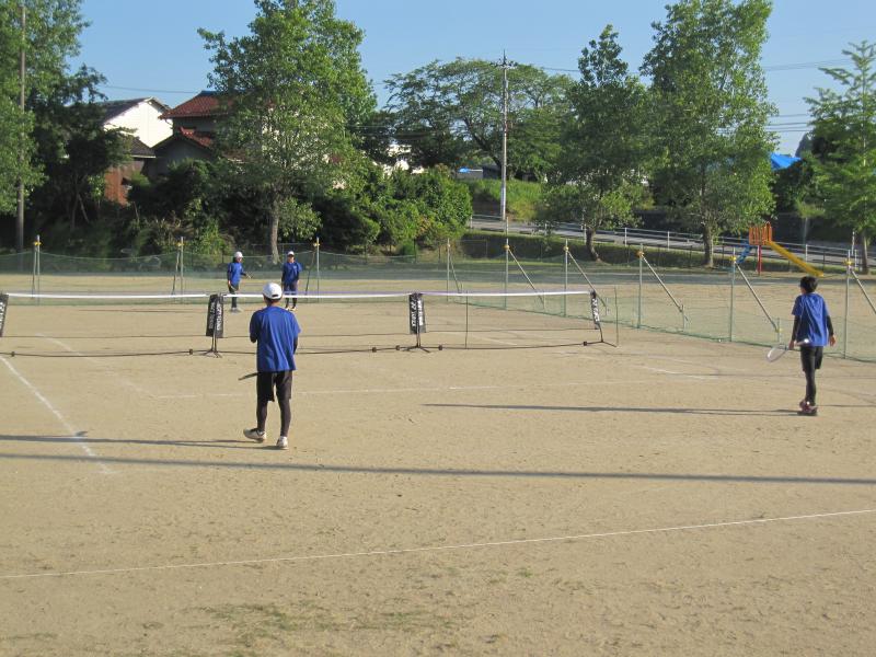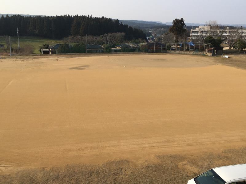 また、天気の良い放課後は、グラウンドで体を動かす生徒たちもいます。1月は駐車場となっていたグラウンドですが、子どもが使いやすいようにと校務員が一生懸命整備してくれました。昨日は野球、今日はテニスをする姿が見られました。