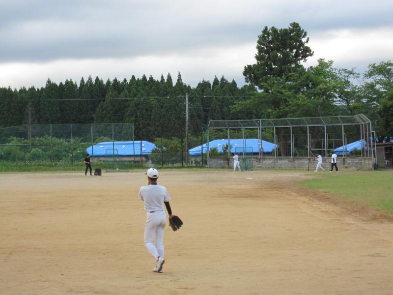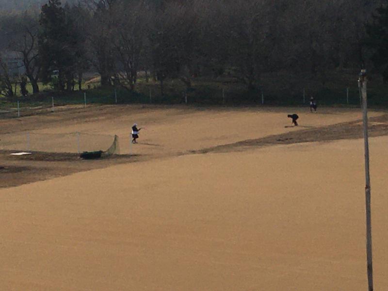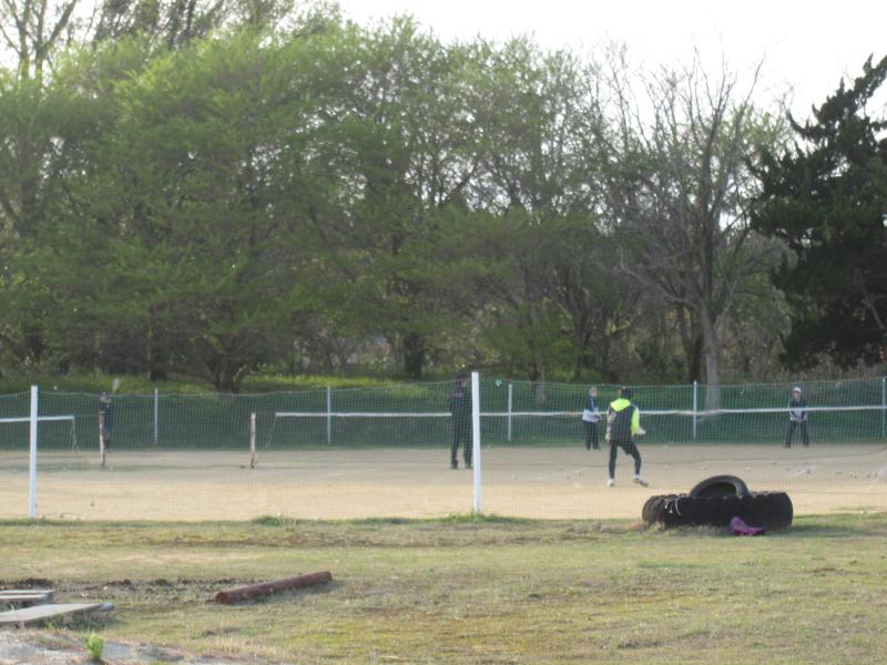 この土日から、春休みに入っています。今日は午前中、グラウンドで野球部とテニス部が練習をしていました。野球部は小木中の選手に卒業生一名も参加し合同練習です。