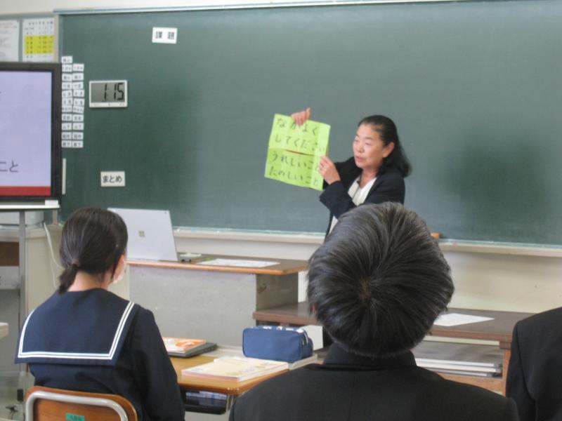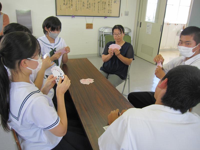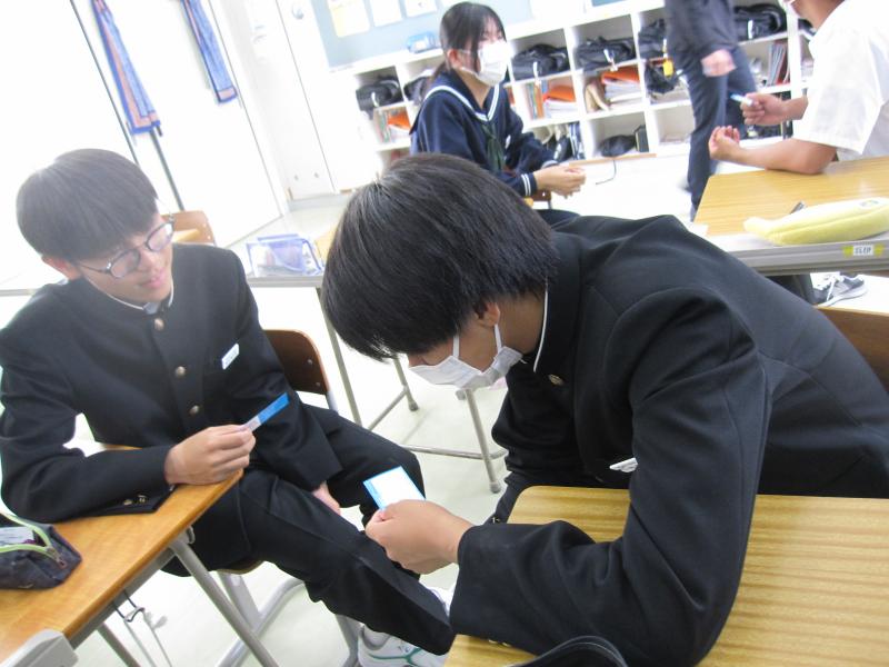 図書・文化委員会が中心に活動しコンクールの形をとりましたが、どの葉書きにも体調を伺う優しい言葉がありました。今日、生徒を代表して委員長と副委員長が長寿園に届けてきました。たくさんの方に出迎えていただき、ありがとうございました。