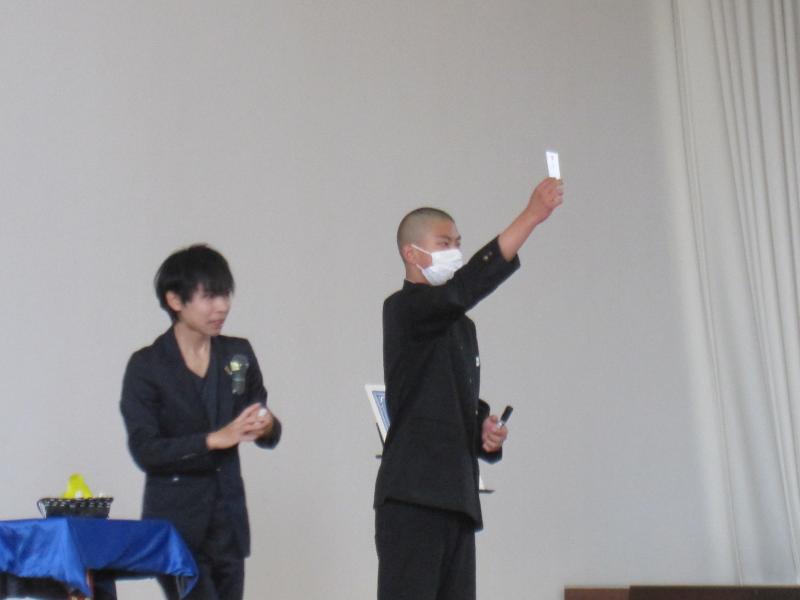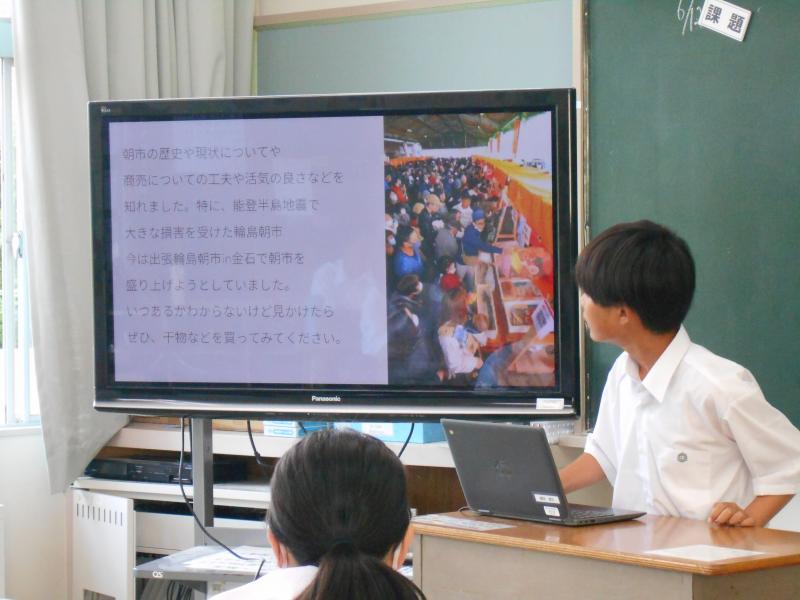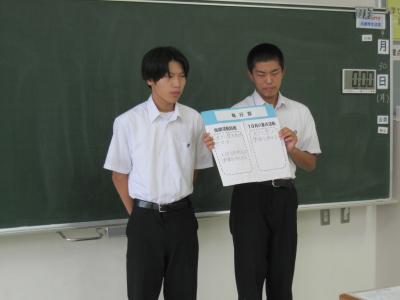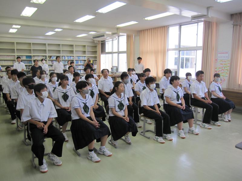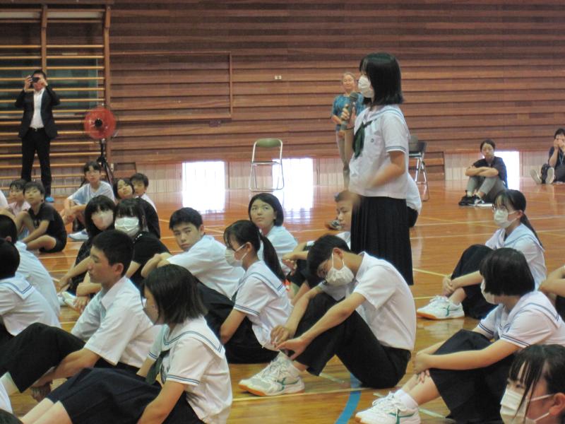 また、能登町生徒提案型学校生活充実化事業について、生徒会を中心に全校生徒で活用方法を考え、決定した事項を能登町教育委員会眞智教育長に申請することができました。