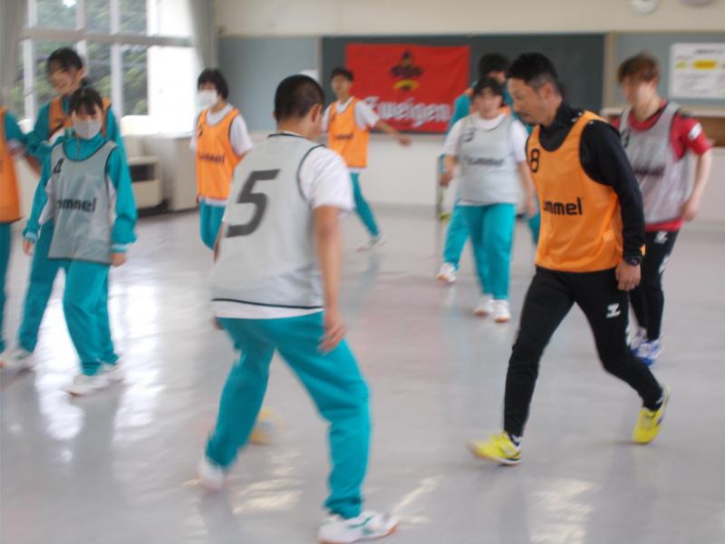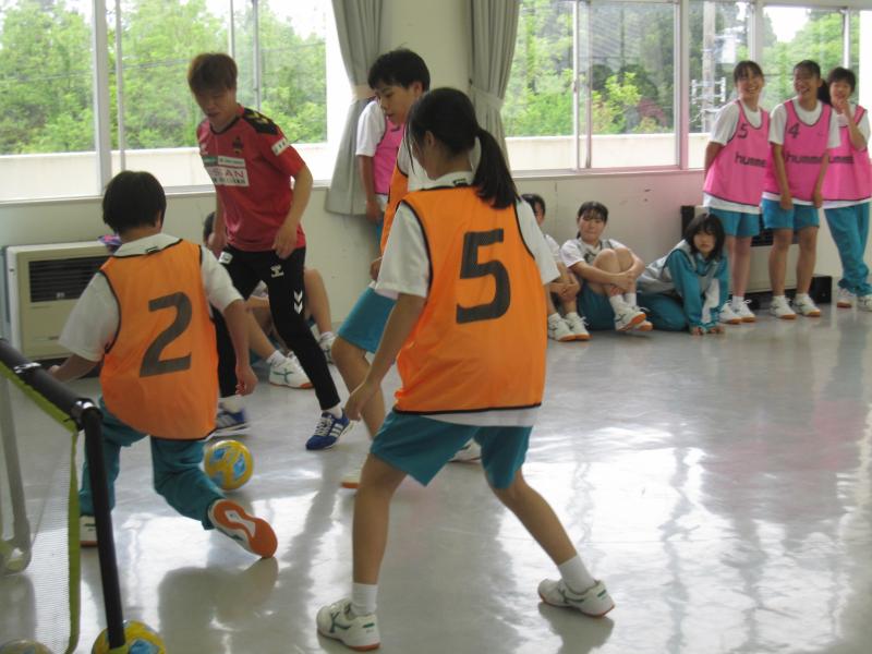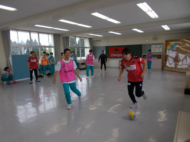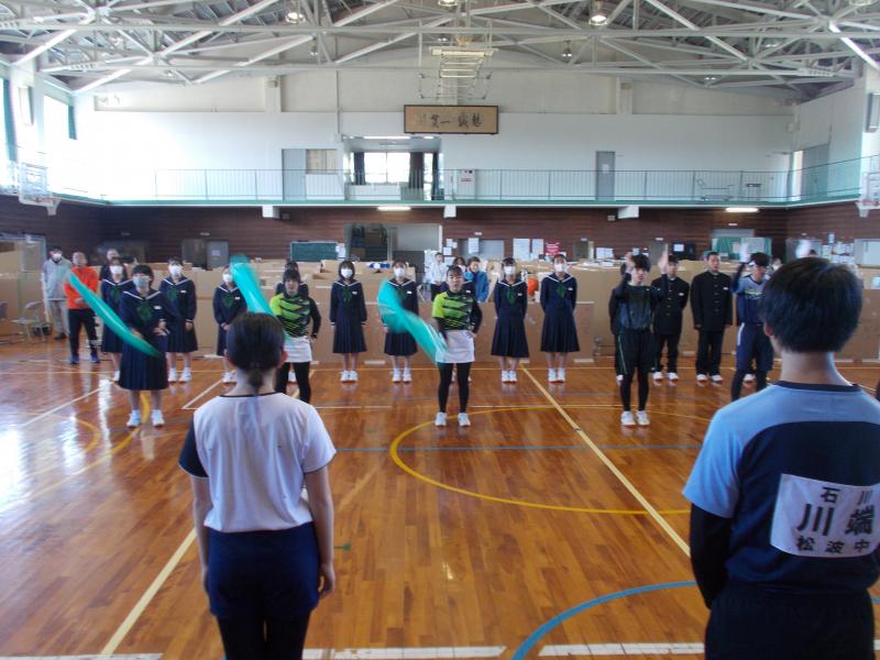 今日の5・6時間目、名古屋から来られた寺島登さんをはじめとする、4名の外部コーチの方々から、「サッカーボール」と「ドッヂボール」の指導を受けました。雪がちらつく気候ではありましたが、その寒さを忘れるくらいにボールとふれあい、ゲームを楽しんでいました。勝敗が分かれる場面では、チームで協力して一生懸命になって勝ちにいこうとする姿が見られました。男女混合で行ったドッヂボールでは、学年に関係なくみんなで楽しむ姿が見られ、松波中学生らしさを感じました。