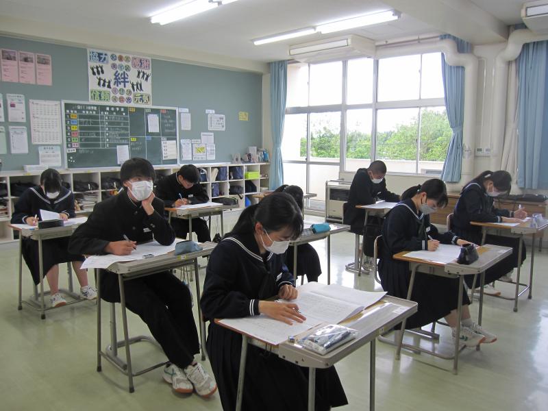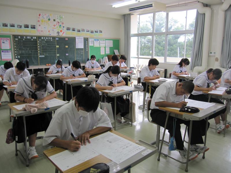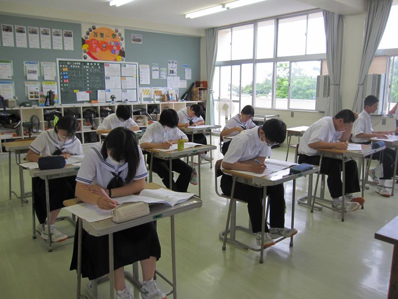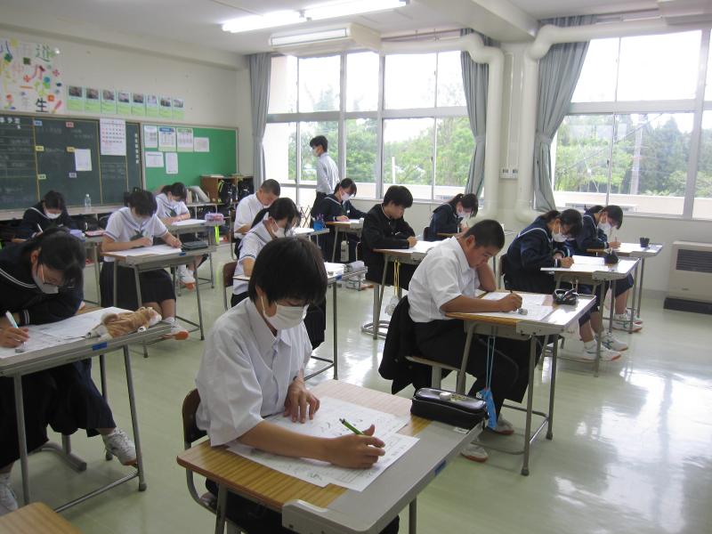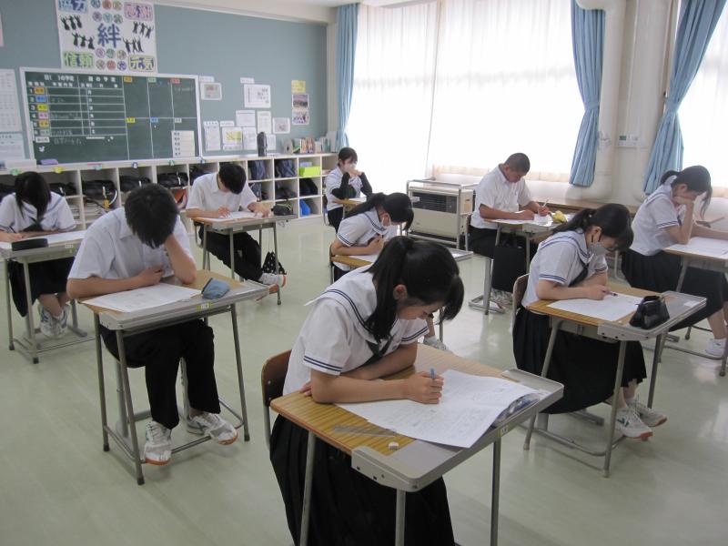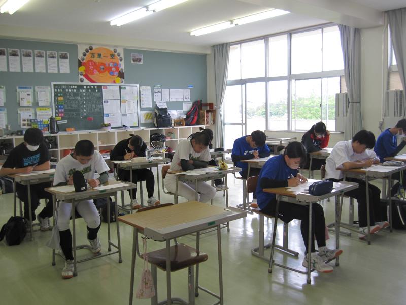 1学期に学習した内容について、夏休みの課題を通して復習しました。その定着を確認するために、今日から2日間学力テストを実施します。昨日の学習集会の中で、家庭学習の大切さの一つとして「なんとなくの知識を確実な知識にする」ことを伝えたところです。夏休みを活用して、「確実な知識」にできたでしょうか。今日は3教科実施し、全員集中して取り組んでいました。
