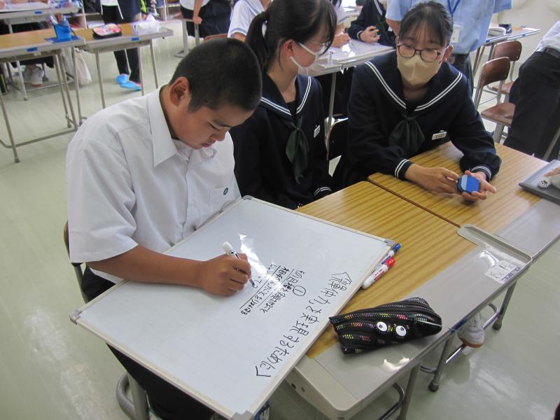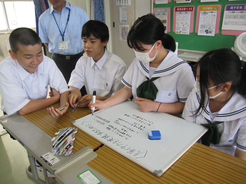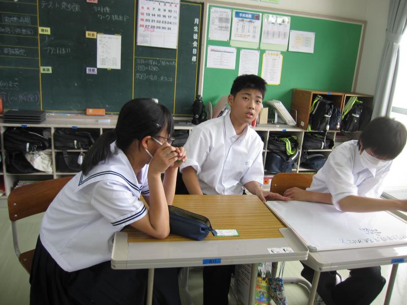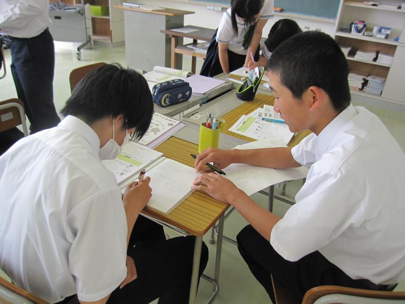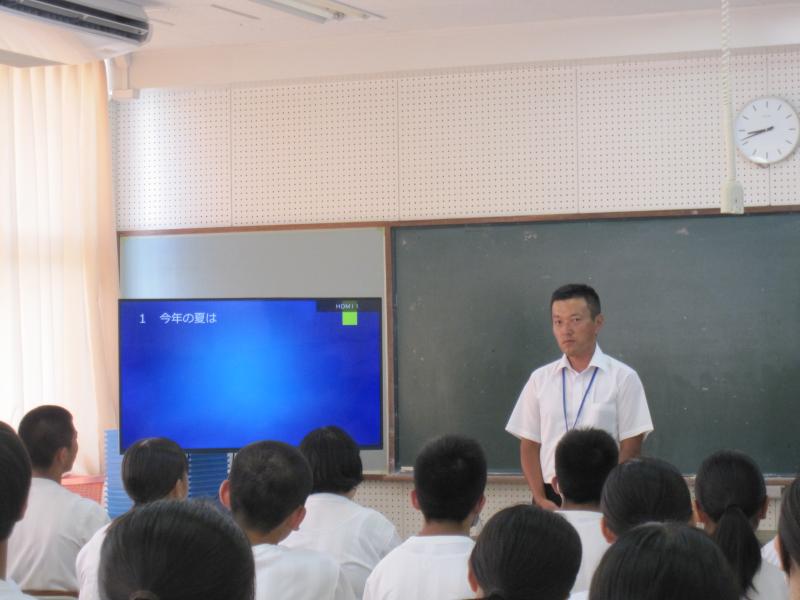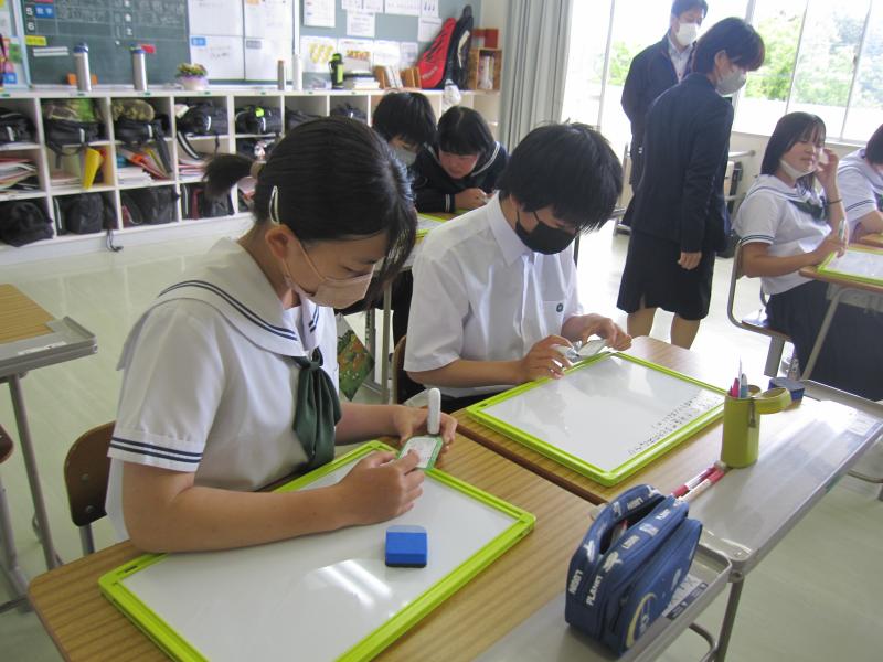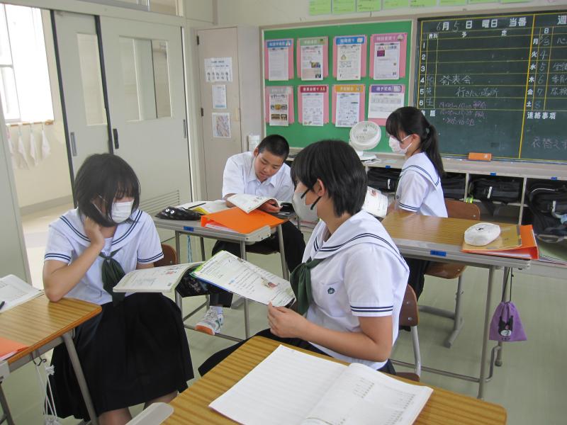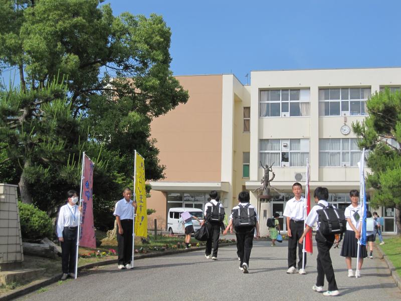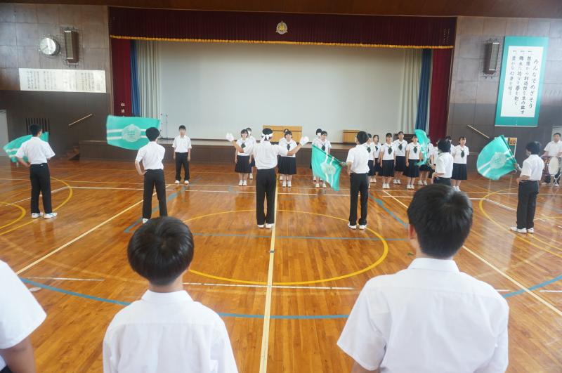 毎日、本当に暑いです! 部活動は、少しでも気温が上がらない朝早くから始めています。1年生は初めての中学校での夏休みですので、部活動と学習の両立が課題であり、体力をつける夏になりそうです。2年生は、声を出して1年生をリードし頑張っています。とっても頼もしいです。3年生は生徒会メンバーを中心に体育祭や平和集会の準備をしています。自分たちが学校行事を成功させるんだ、という意気込みを感じました。