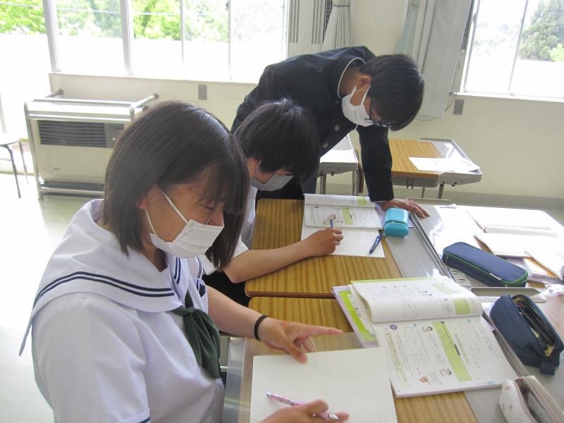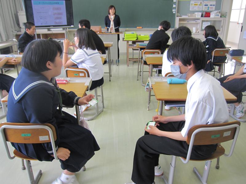 今日の4限目。2年生は英語でした。友達をコンサートに誘うショートトークで、一通り会話の流れを確認した後、すぐノー原稿でペアを見つけて何度も挑戦しました。