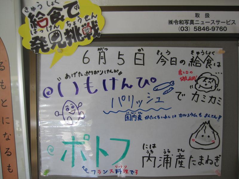 今日のメニューは不動の人気メニュー「カレーライス(プリン、野菜ジュース、水)」です。保管用冷蔵庫の関係で和え物をつけることはできませんでしたが、ご飯とルーは給食室で調理したものです。完全給食の提供を目指して、環境整備と食材確保に努力いたします。なお、配膳者のエプロンも洗濯の環境が整ったので、来週より着用予定です。