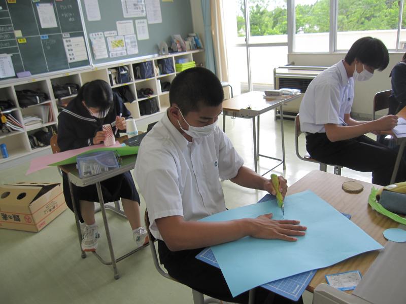 じめじめと蒸し暑い日がつづいています。気温はさほど高くなくても、発汗できずに熱中症になってしまうことがあるそうです。お年寄りにも辛い夏が訪れています。そんな暑さを少しでも和らいでもらえればと思い、生徒は長寿園の皆さんに向けて暑中見舞いを書きました。