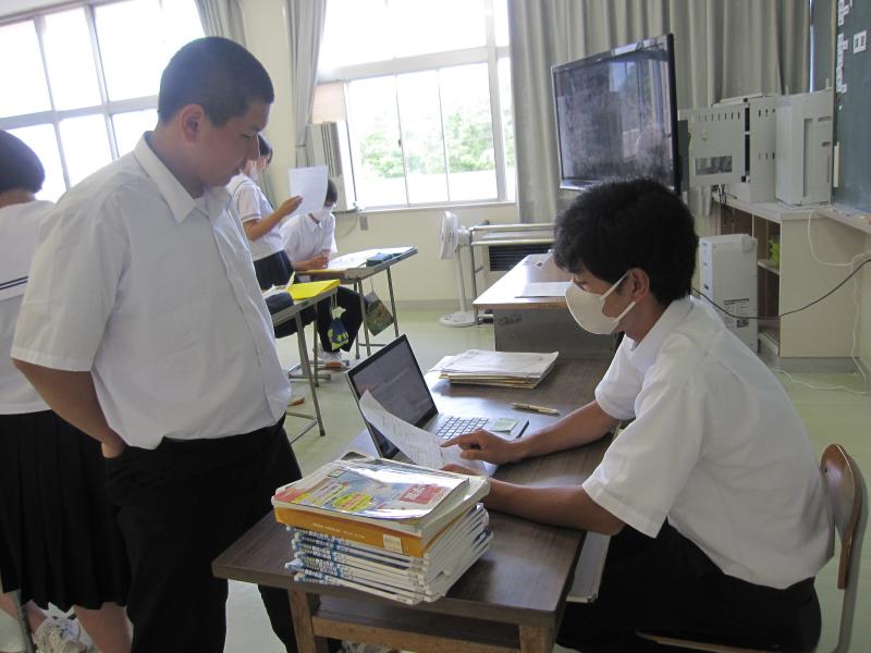 部活動時間の前後に、各部で学習の時間を設けています。練習した後に、身体をクールダウンする意味もあり、涼しい教室で夏休みの課題に取り組んでいます。静かに集中する時間になっています。