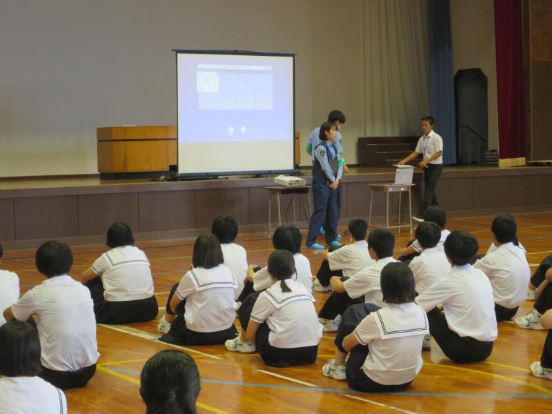 後期生徒会役員選挙を行いました。生徒会長・副会長に3年生2人、執行委員に2年生2人が立候補し、後期生徒会としてどのような学校にしていきたいか、「目を見て挨拶できる」「生徒会レクレーションを通して全校生徒が仲良くできる」「互いを思いやる心をもっていじめがない」など、自分の思いを演説しました。1年生にとっては、立会演説会は初めての経験であり、立候補者一人一人の話を静かに集中して聞いていました。選挙後開票され、全員が信任されました。後期生徒会執行部、頑張ってください!!