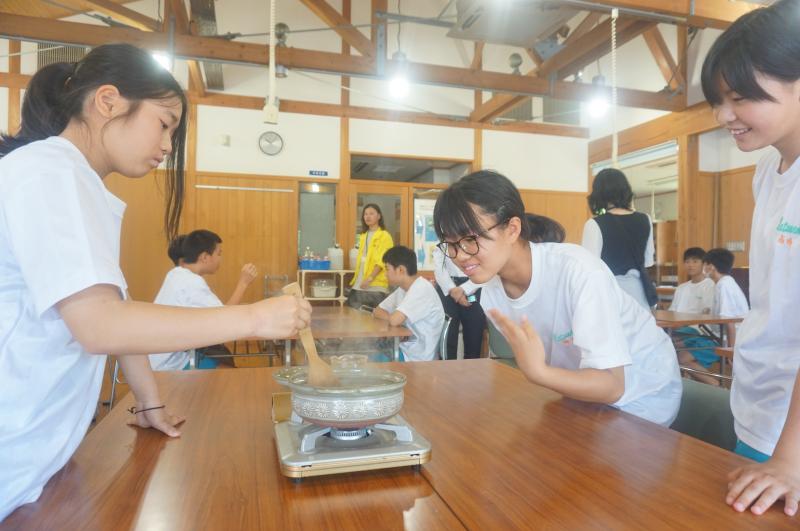 2年生は技術の時間に栽培していたジャガイモを収穫しました。ひと夏を超えたので心配していましたが、しっかり大きくできていました。収穫した後、とれたてをこふき芋とじゃがバターにして食べました。