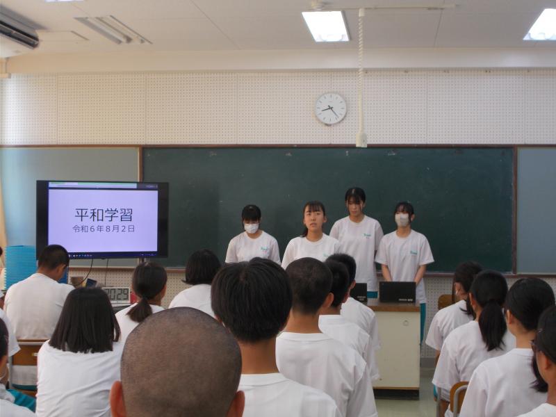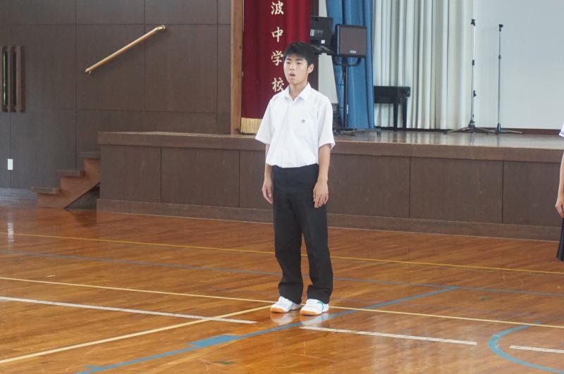 前置きが長くなりましたが、今日は全校で平和について考えました。生徒会が戦中戦後の日本についてプレゼンし、今の自分たちができることを考え、「松波中学校平和宣言文」を読み上げました。また、和田先生からオリンピックと戦争について話を聞きました。6月23日、8月6日、8月9日、8月15日…「夏だからこそ」平和を考える日に。
