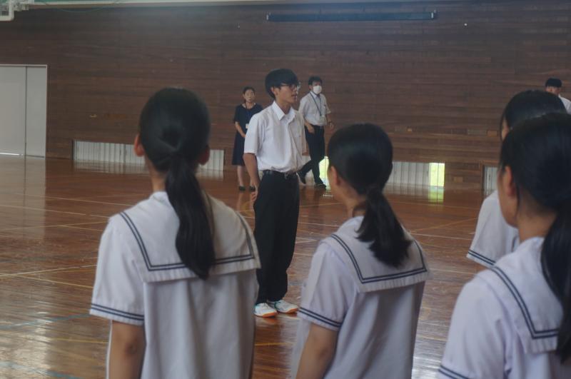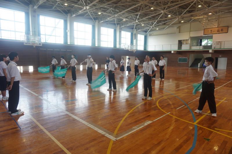 今日から、体育祭に向けた競技練習や団練習が始まりました。これまで生徒会執行部や各委員会で企画準備してきたことを、全校で練習・確認する時間になります。午後から暑い中でしたが、熱心に取り組んでいました。また、南中ソーランの練習では、青団・赤団それぞれの3年生が下級生へ、丁寧に隊形についてを伝えていました。体育祭は、17日(火)予行、19日(木)本番です。