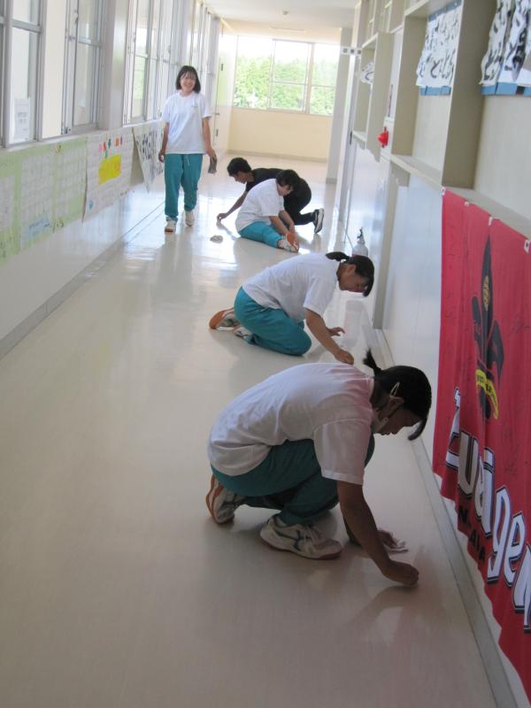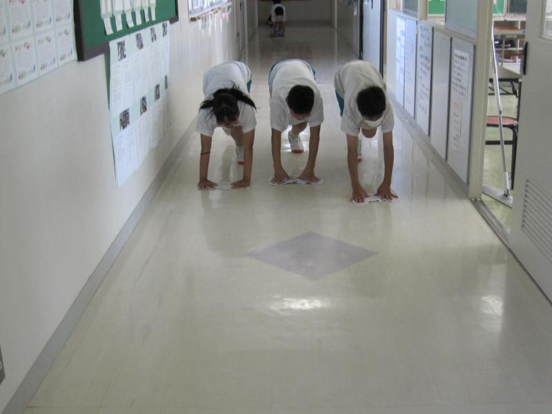 また、廊下のワックスがけも全校で行いました。全員で掃除し、ぴかぴかにひかる廊下になりました。ありがとう!!