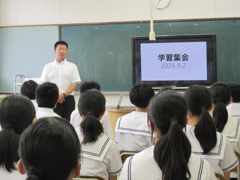【学習集会】授業や家庭学習の進め方について、教科担任から