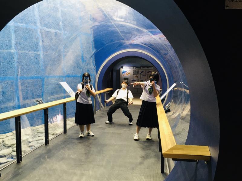 ビンゴの興奮冷めやらぬうちに琵琶湖博物館に到着しました。琵琶湖トレイル(琵琶湖を一望できる展望台)で集合写真の後、しばらくは自由見学です。