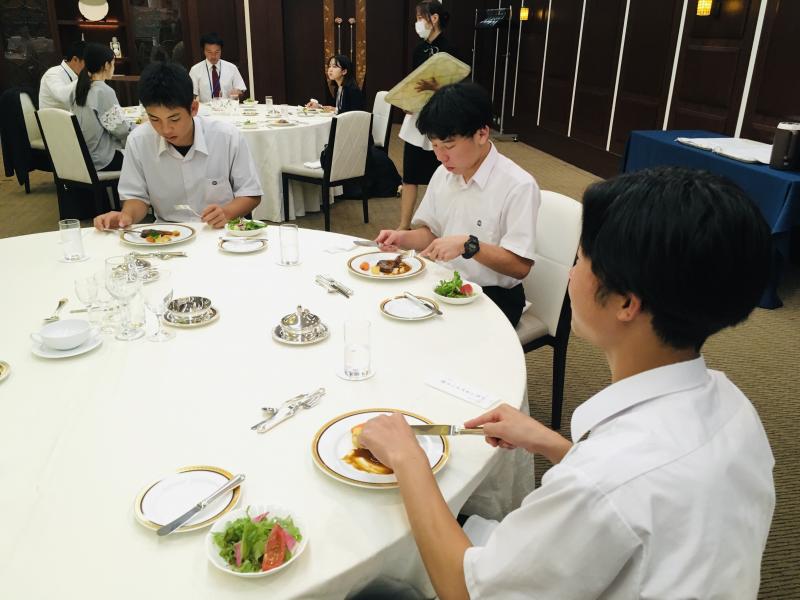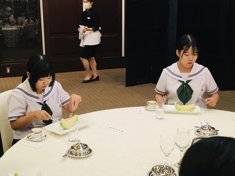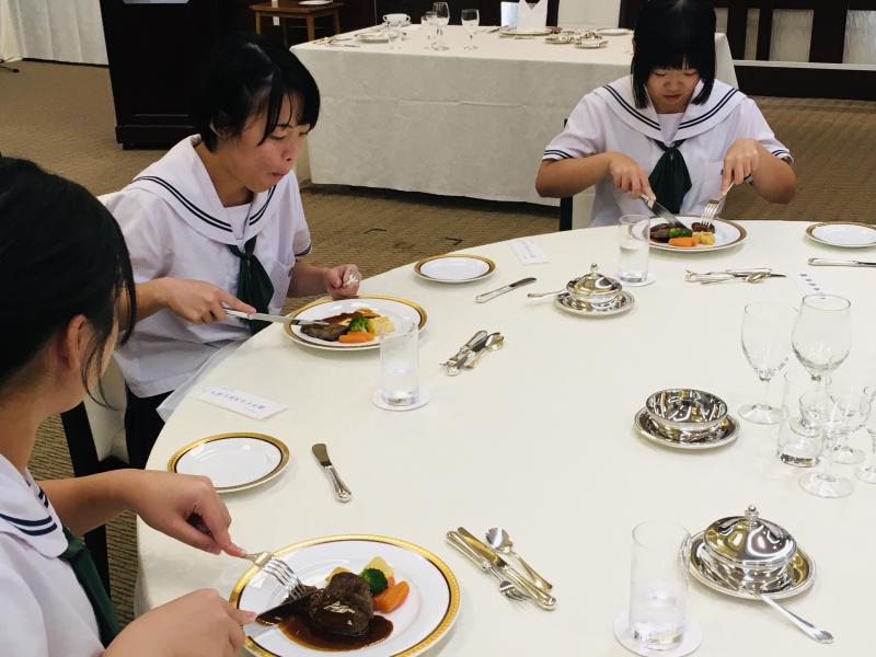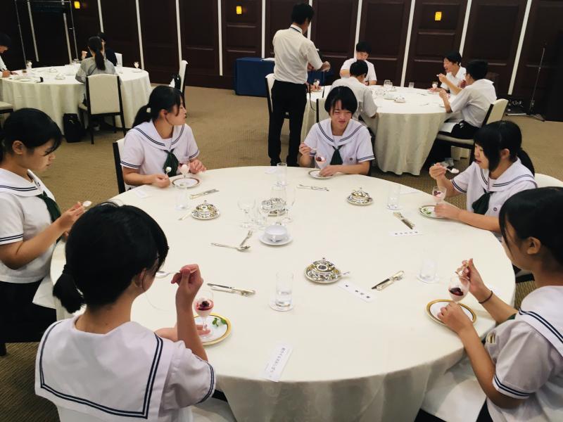 メインの前にはお腹いっぱいと言っていた生徒も、デザートには笑顔がこぼれます。作法の説明をうけながらの2時間も終了しました。