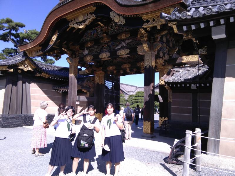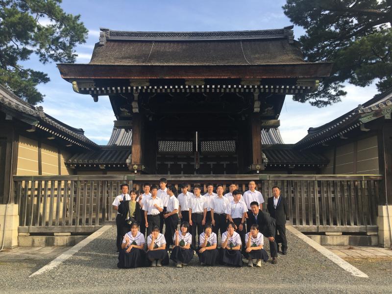 朝食の後、ホテルの目の前にある京都御所を散策、全員そろって集合写真を撮りました。